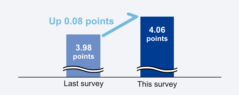 The average score for organizational commitment*2, which represents attachment to the organization, was 4.06 points, higher than the last survey's results (3.98 points in the 2023 survey). The score was also higher than the median of 3.5 points.